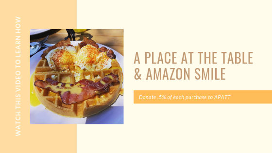Get an extra reason to smile when you buy through Amazon. When you select A Place At The Table as your Amazon Smile Charity .5% of all of your purchases will go towards funding A Place At The Table! While this may not seem like much, for non-profits every little bit adds up especially around Prime Day and Black Friday!
